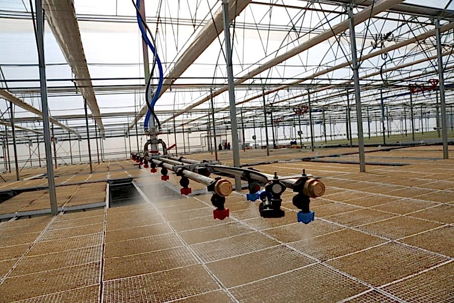 Sulama sistemi redüktör ve makaralı halat yardımıyla sera boyunca çift ray sistemi üzerinde hareket ederek fidelerin sulamasında kullanılan sulama ekipmanıdır.